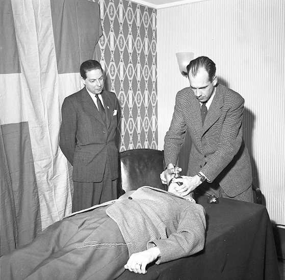 Enligt notering: "Överlämnande av livräddningsboj samt narkosövning Nov 57".