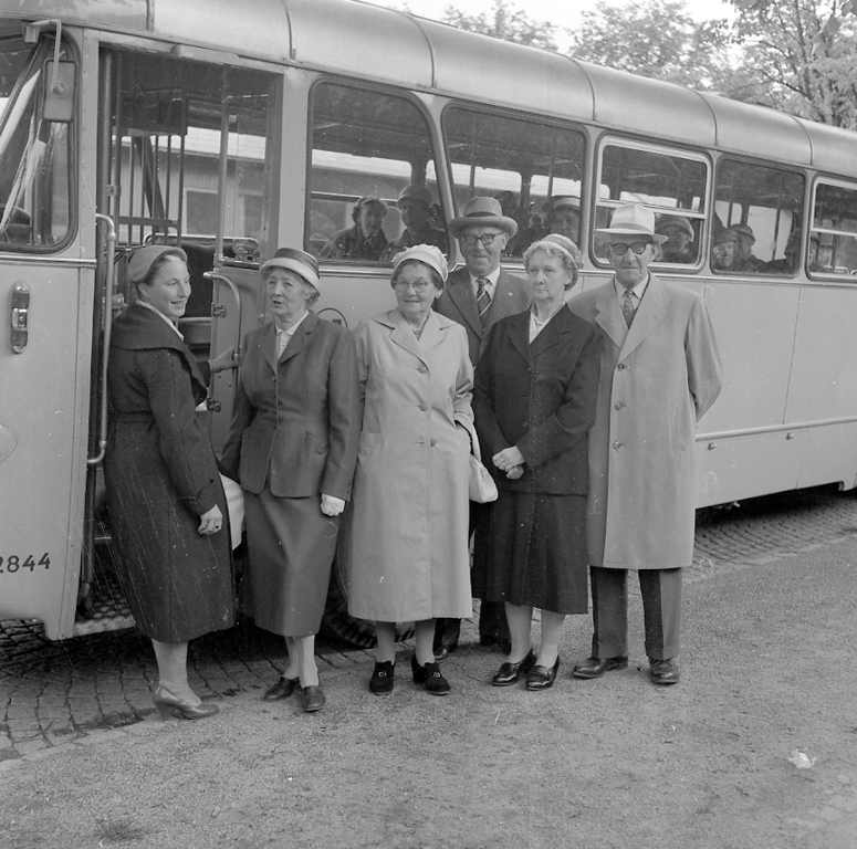 Enligt notering: "Utflykt för handikappade och åldringar start Margretegärde-parken 3/7 -60".