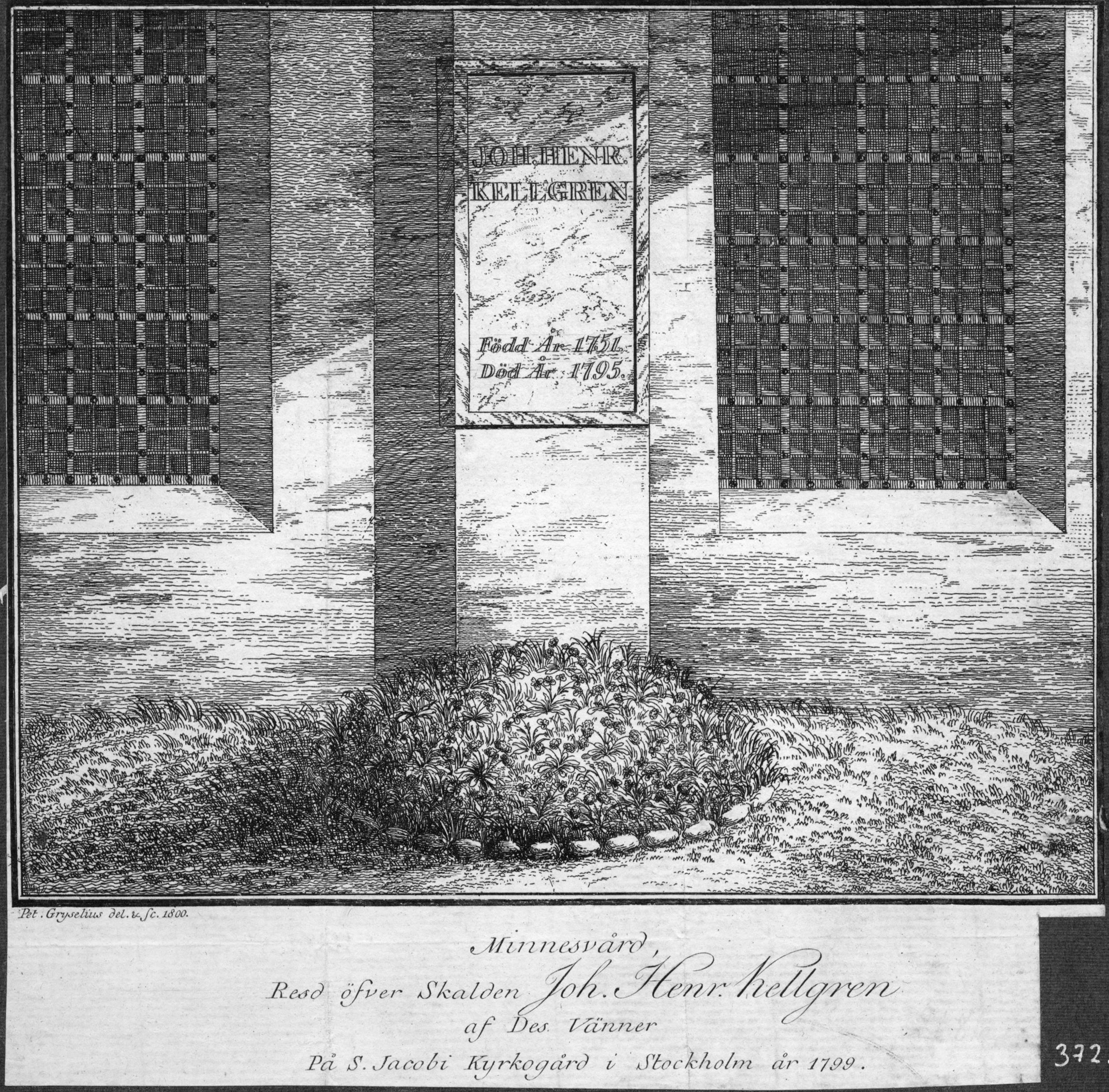 Grav över Johan Henrik Kellgren, rest 1799, tryck.