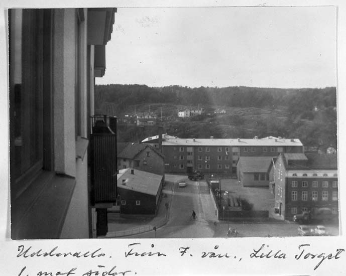 Text på kortet: "Uddevalla. Från 7. vån., Lilla Torget 1 mot söder".