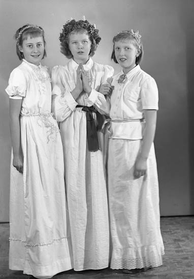 Enligt fotografens notering: "Lucior 1949. Monika Lindqvist, Anita Brant o Lena Olsson, Stenungsund".