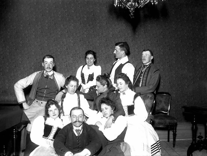 Enligt fotografens noteringar: "Folkdansare i grupp."