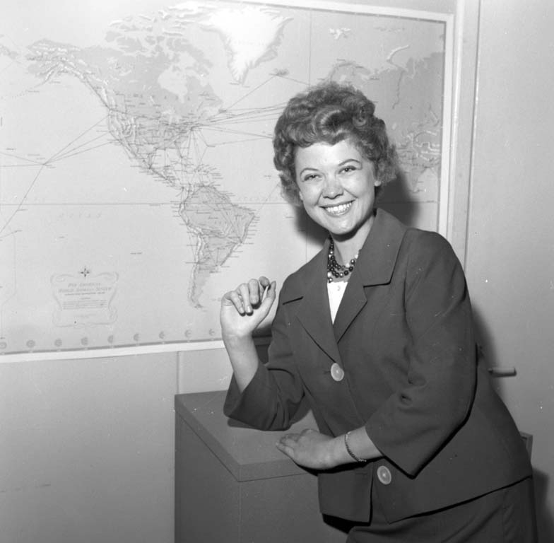 Enligt notering: "Flygvärdinna i Pan American Airlines 7/6 -60".