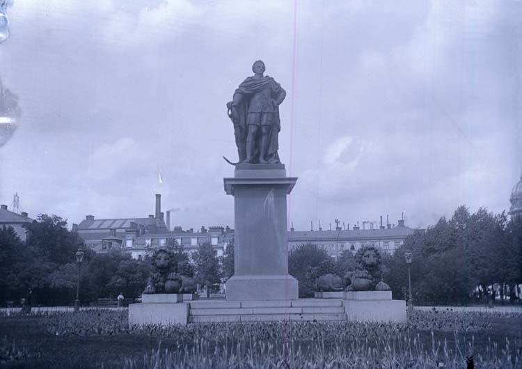 Enligt text som medföljde bilden: "Stockholm, Karl XII staty 3/6 1905."