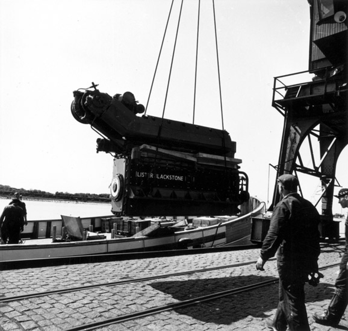 Maskinen lyfts ombord för installation.