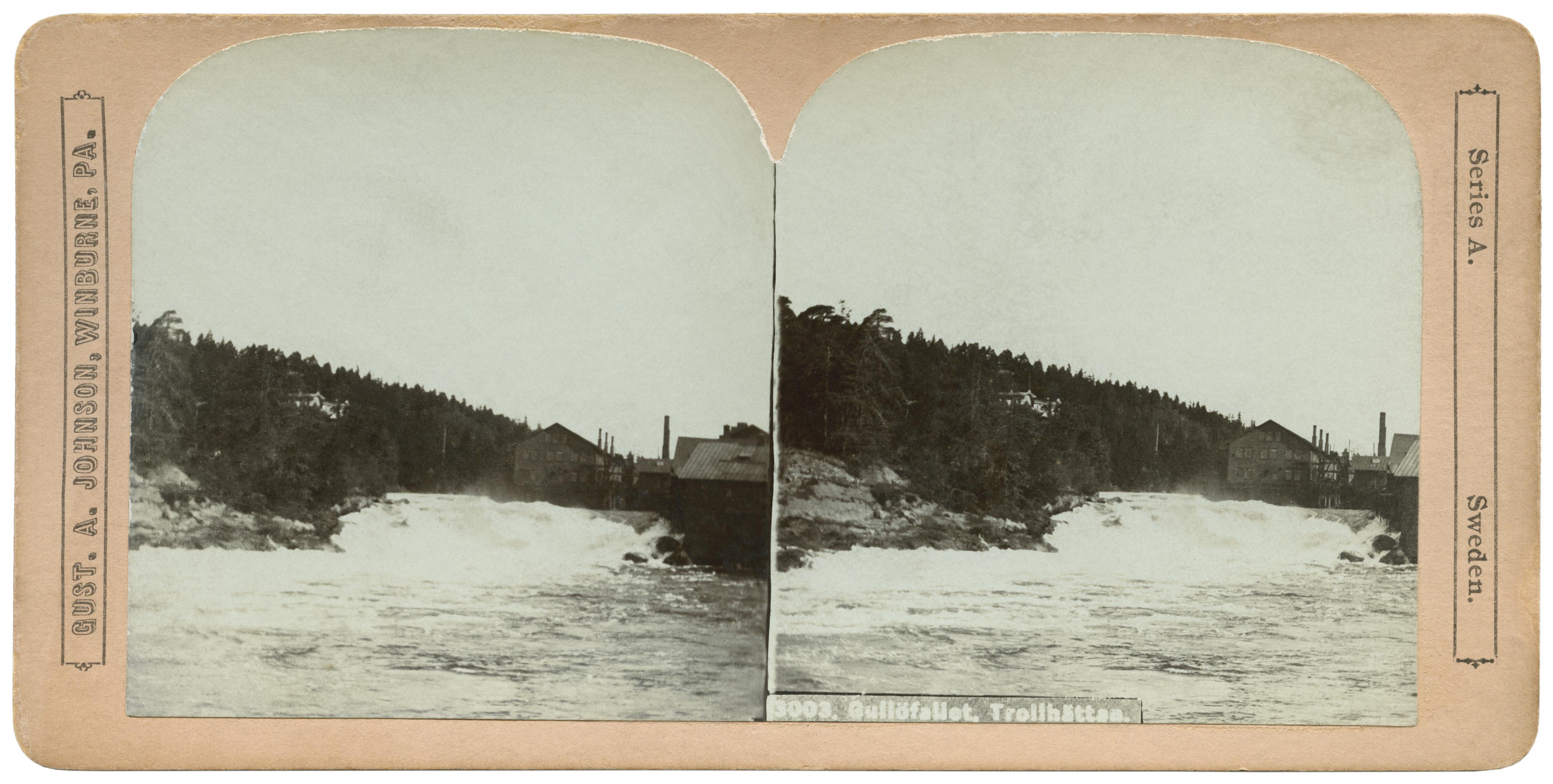 Trollhättefallen, Gullöfallet. Stereofotografi. Gust. A. Johnson, Winburne, PA. Series A. Sweden.
