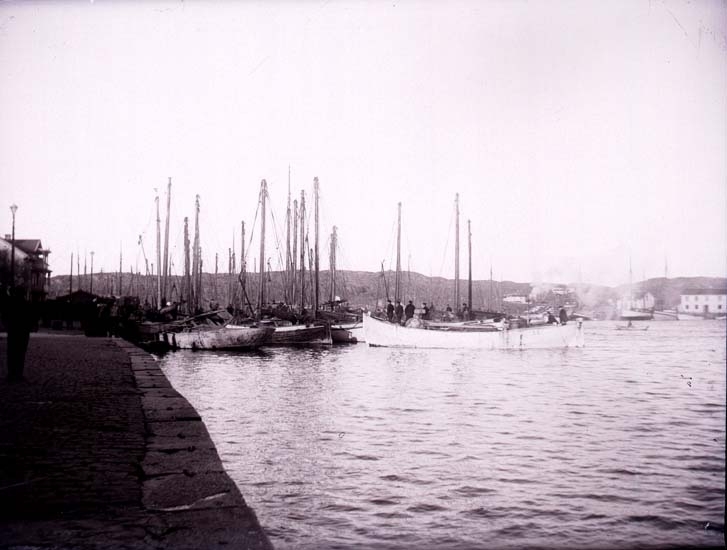Enligt text som medföljde bilden "Marstrand kajen Sillbåtar".