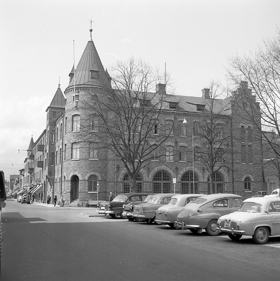 Enligt notering: "Brandstation Exteriör 7/5 -57".