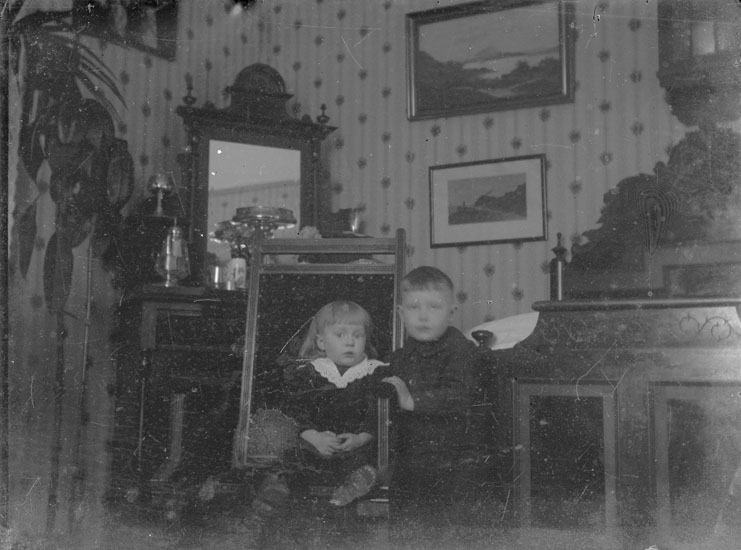 Enl. text i blå bok: "Interiör, två barn i sovrum"