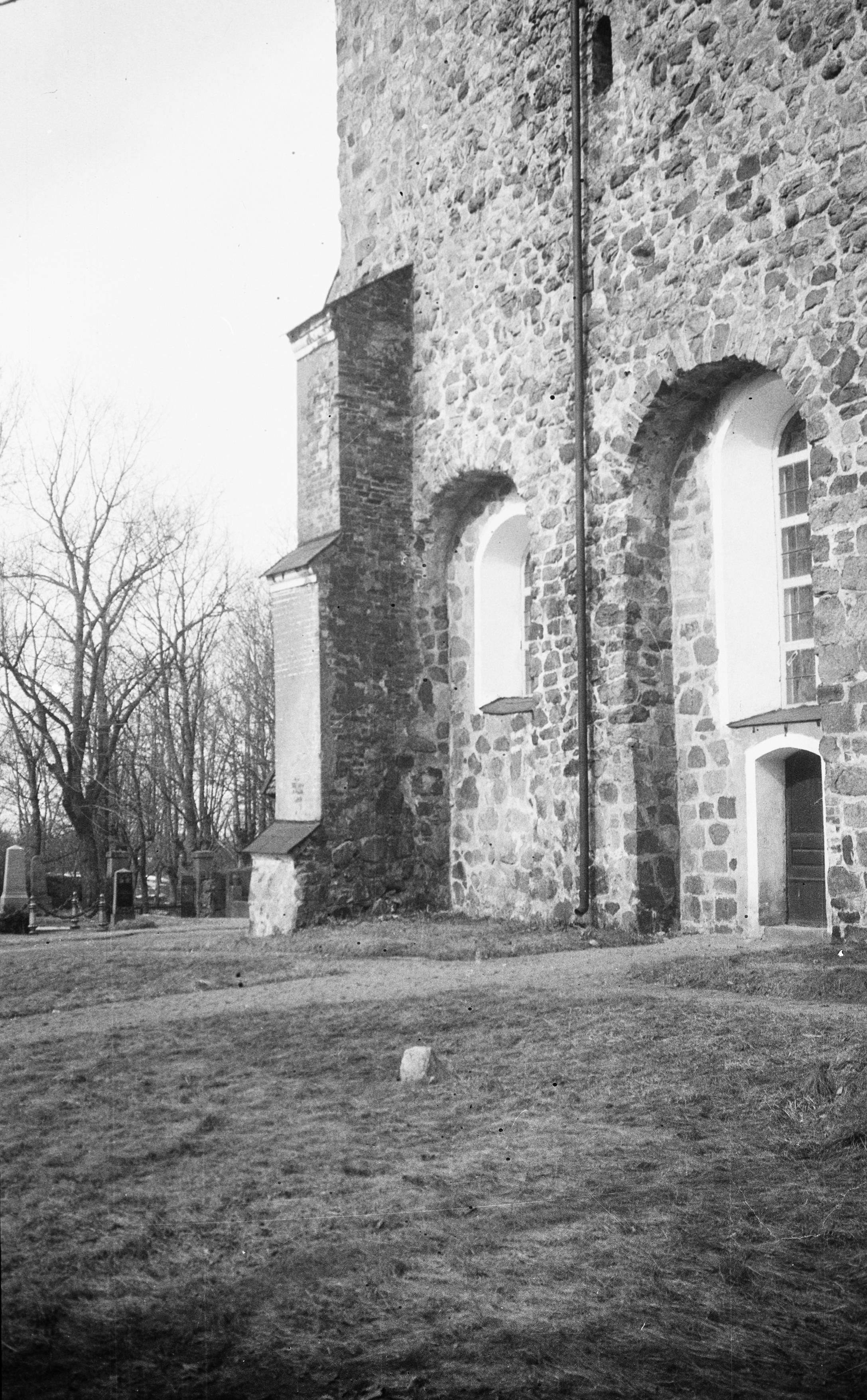 Kyrkan mot söder. Spår av det f.d. tvärskeppet.