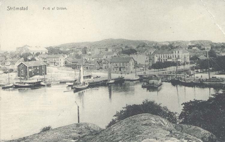 Tryckt text på kortet: "Parti af Udden. Strömstad."