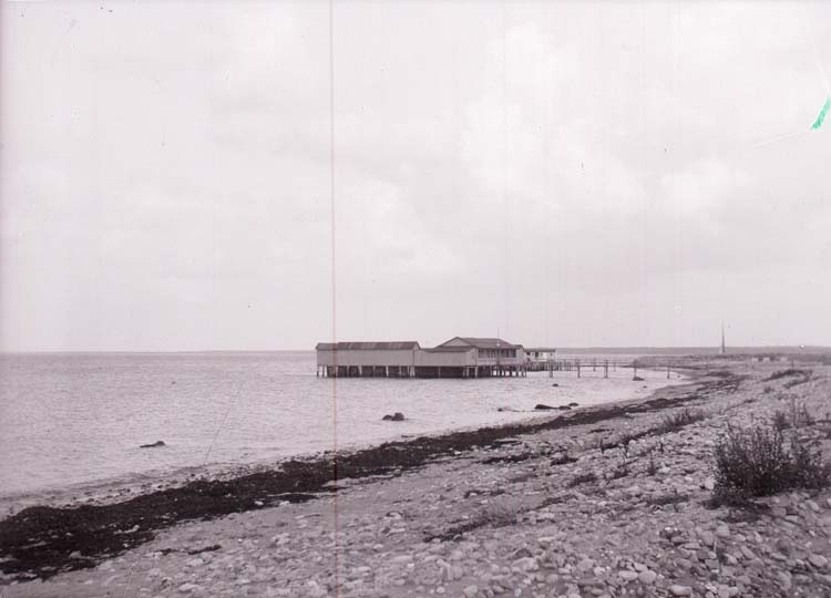 Enligt text som medföljde bilden: "Båstad, Kallbadhusen o. Stranden 31/8 08."