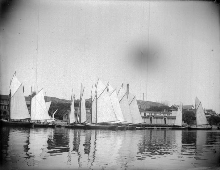 Enligt text som medföljde bilden: "Lysekil. Badgästbåtarne från sjön 1899."