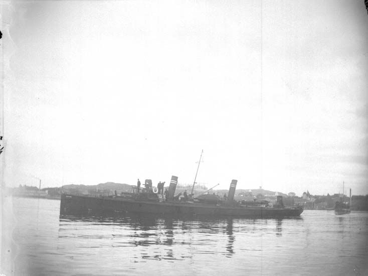 Enligt text som medföljde bilden. "Lysekil. Svenska Torpedbåten "Meteor" fr. sidan