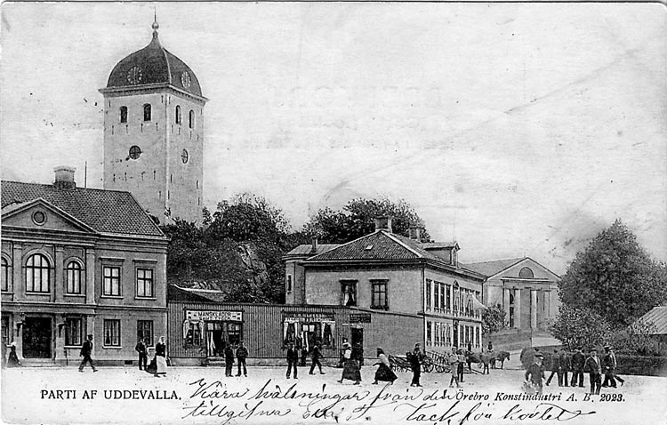 Tryckt text på vykortets framsida: "Parti af Uddevalla".