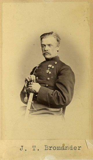 Text på kortets baksida: "Jacob Magnus Theodor Bromander, f. 1837. Afsked som kapten. Bosatt i Lysekil".