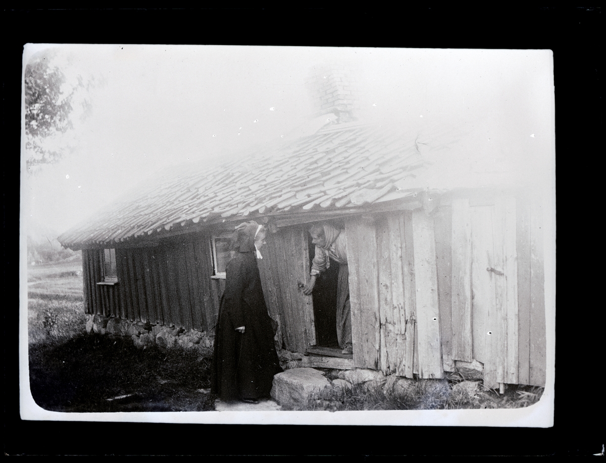 Möte mellan två kvinnor vid en dörr. Är det en diakonissa eller en barnmorska som kommer på besök?