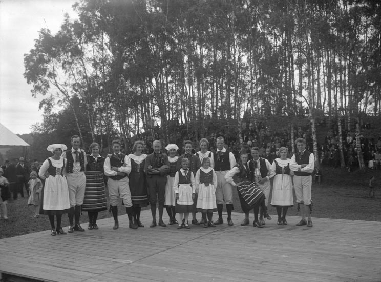 1. Ida Tholen, 2. Gunnar Tholen, 3. Gerda Tholen, 4. Rudolf Hansson, 5. Karin Muhr, 6. Ernst Löfstrand, 7. Edit Malmqvist, 8. Gösta Tjäder ?, 9. Anna Waern, 10. Karl Waern, 11. Andersson Margit ("blockan"), 12. Gunnar Muhr, 13. Margit Andersson Unas syster g. Muhr, 14. ragnar Muhr. Småflickorna: Brit-Lis Nessen, Margareta Bildt. Ej med i Folkdanslaget."
