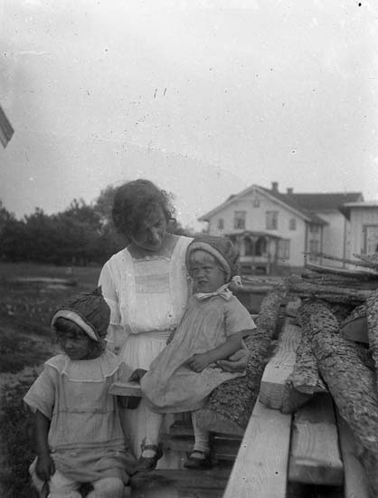 Enligt notering: "En mor med sina flickor, Rabbalshede gård?".