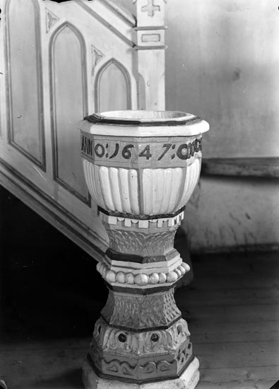 Enligt fotografens noteringar: "Dopfunt i Håby kyrka."