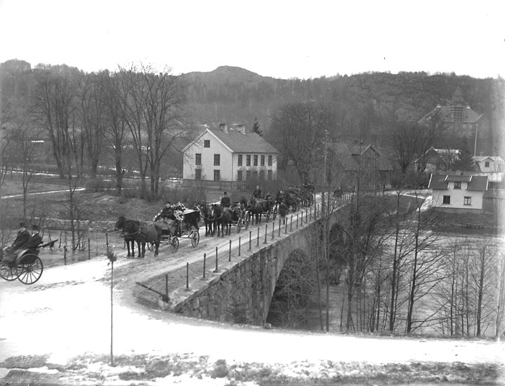 Enligt noteringar: "Begravningståg på Kvistrumsbron. På berget det nya tingshuset under byggnation." (BJ)