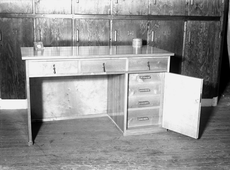 Enligt noteringar: "Skrivbord tillverkat som elevarbete vid slöjdskolan." (BJ)