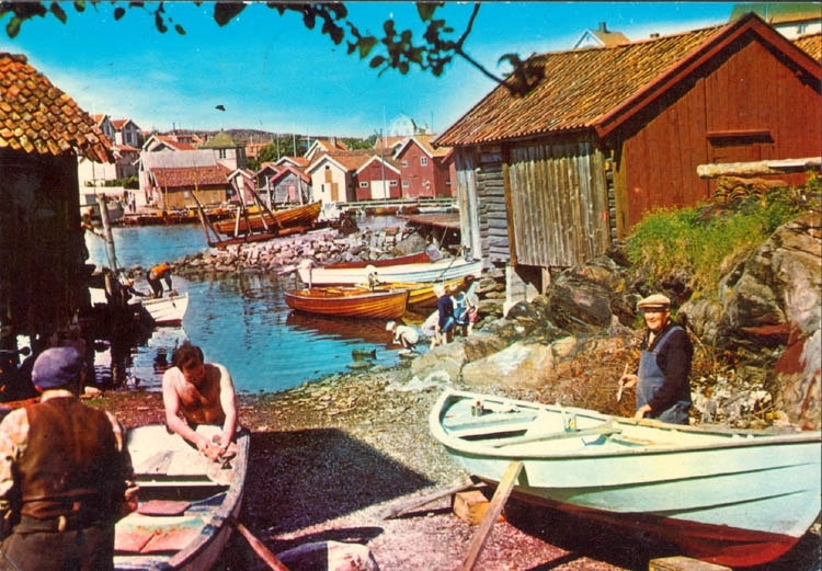 Tryckt text på kortet: "Bohuslän. Båtarna rustas."
