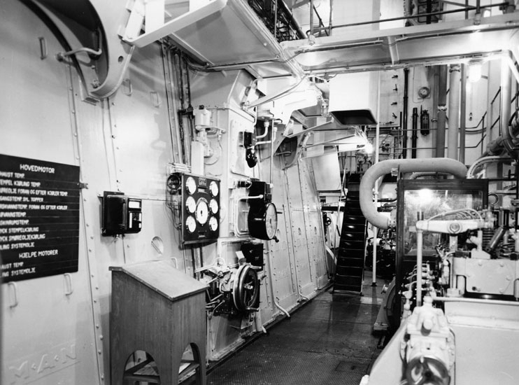 Titel: Interör från 124 M/T Astrid Elisabeth, maskinrum.