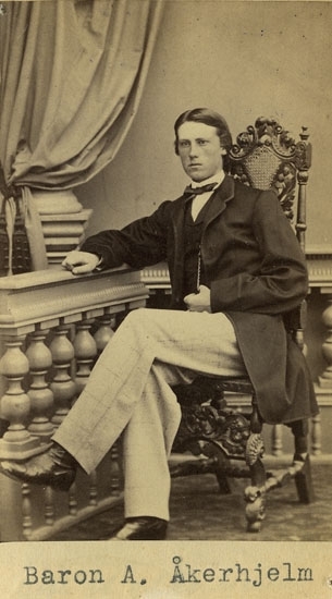 Text på kortets baksida: "Kabinettskammarherre Baron Axel Åkerhjelm".