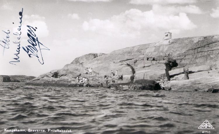 Tryckt text på kortet: "Kungshamn. Gravarne. Friluftsbadet".