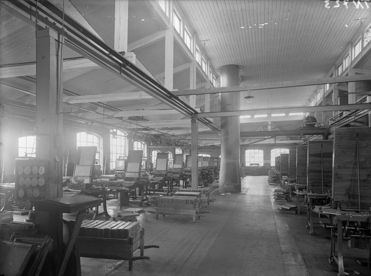 Enligt tidigare noteringar: "Interiör från Uddevalla Tändsticksfabrik. Uttagaravdelningen (efter satsningen)"