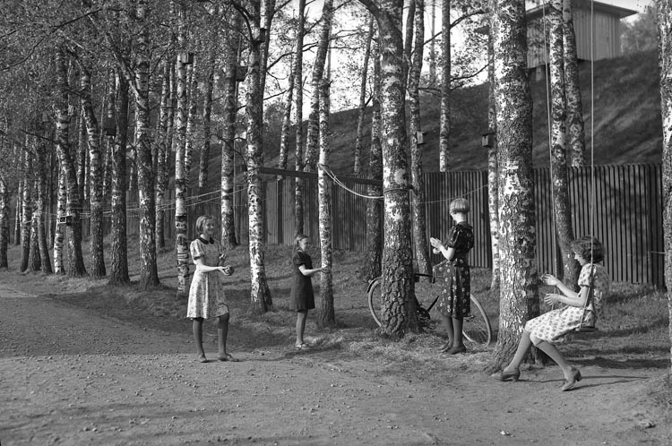 Enligt fotografens noteringar: "3 st. 1938. 24. Flickor och björkar vid Tången Munkedal".