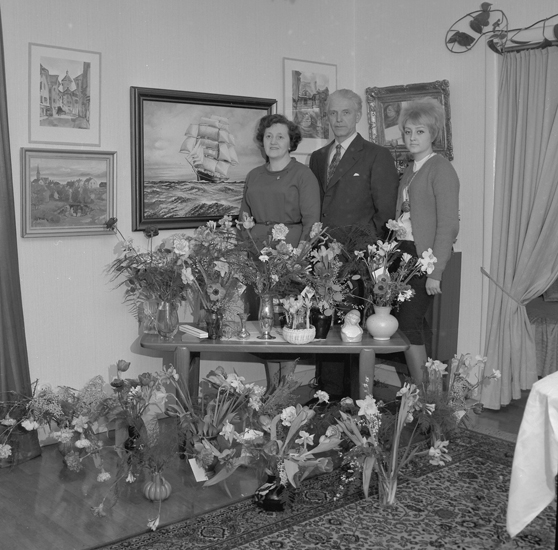 Text till bilden: "Fru Svensson, Landsvägsgatan 81. 50 år. 1961.02.10"