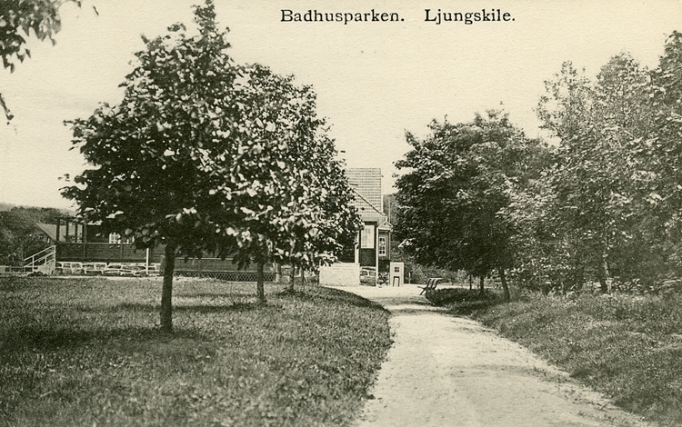 Enligt Bengt Lundins noteringar: "Entré till badhusparken. Kamrerarkontor. Ljungskile".