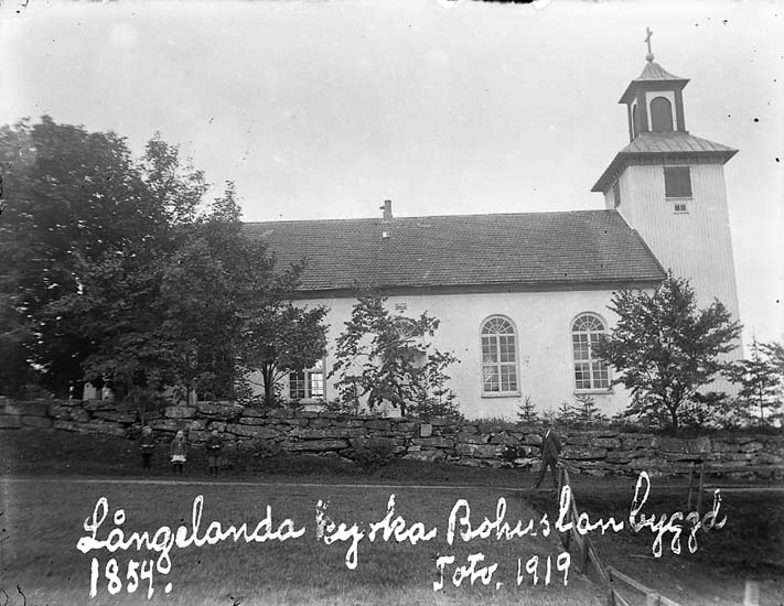 Enligt text på fotot: "Långelanda kyrka Bohuslän byggd 1854. Foto 1919".
