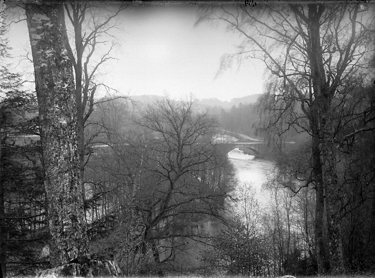 Enligt senare noteringar: "Kvistrumsbron från 'Kihlmans udde'. Bakom bron syns Kvistrumsvägen upp mot Munkedals station. 'Kihlmans udde' håller fn. på att schaktas ner i samband med förstärkningsarbeten utmed Kvistrumsälven. I samband med detta har flera fastigheter vid udden rivits." (BJ)