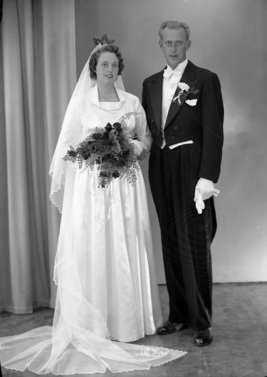 Enligt fotografens notering: "Brudpar Herr Arne Johnsson, Jonsborg, Kode".