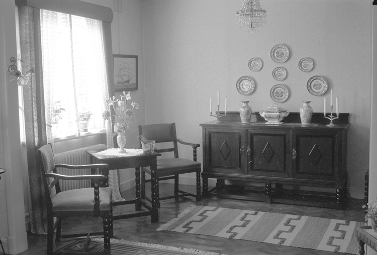 Text till bilden: "Interiör hos Hadelius. Fiskaregatan 8 B. 1951"