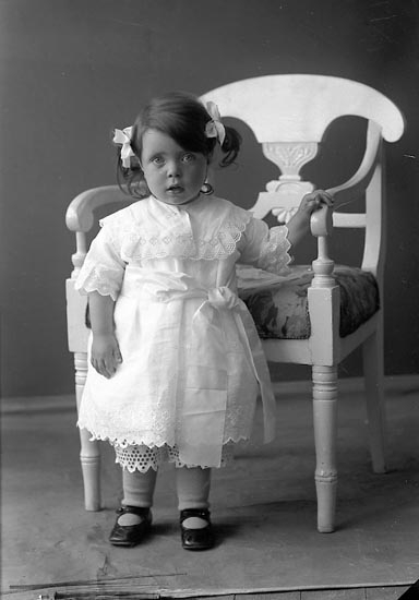 Enligt fotografens journal nr 2 1909-1915: "Andersson, Mathilda, Habborsby, Höviksnäs flickan ensam".