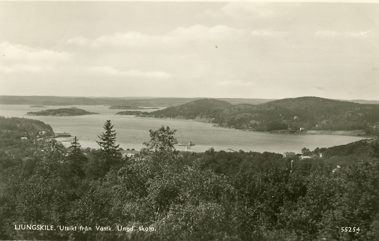 Enligt Bengt Lundins noteringar: "Utsikt från Västkustens Ungdomsskolan. Ljungskile".