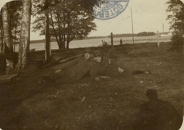 Enligt Bengt Lundins noteringar: "Olle och Calle vid underbefälsutbildningen i Karlsborg".
