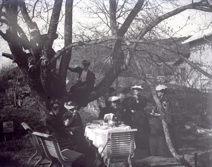 Dambjudning i trädgården, Backudden, 1 maj 1895.