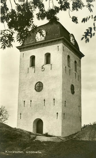 Tryckt text på bilden: "Klocktornet. Uddevalla."