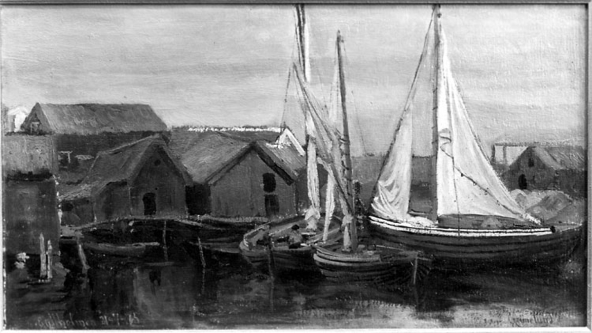 Målningen är en frisk naturstudie av den norske målaren J.M. Grimelund född 1882, död 1917. Denne norske målare, som är representerad i Luxembourg-museet och i Nationalgalleriet i Oslo och Bergens Faste Billedgalleri, åtnjuter i sitt hemland gott anseende såsom konstnär.