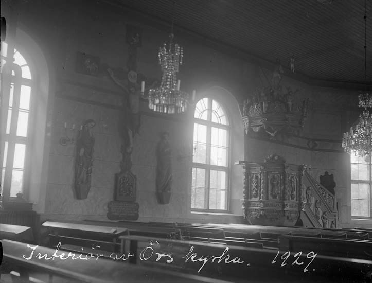 Enligt text på fotot: "Interiör av Örs kyrka. 1929".