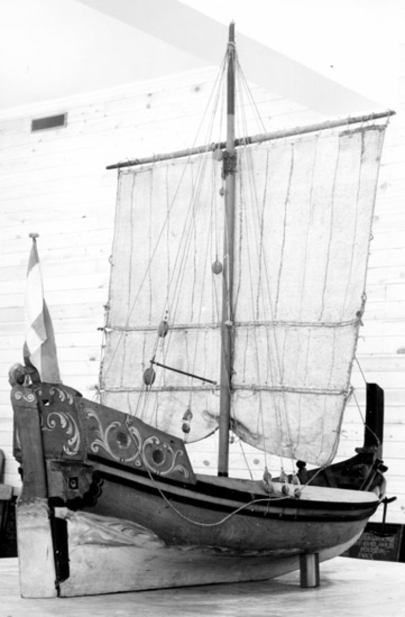 Skrivet på baksidan: Tromsö museum Ts. 839. Jaktemodell fra Trena Kirke