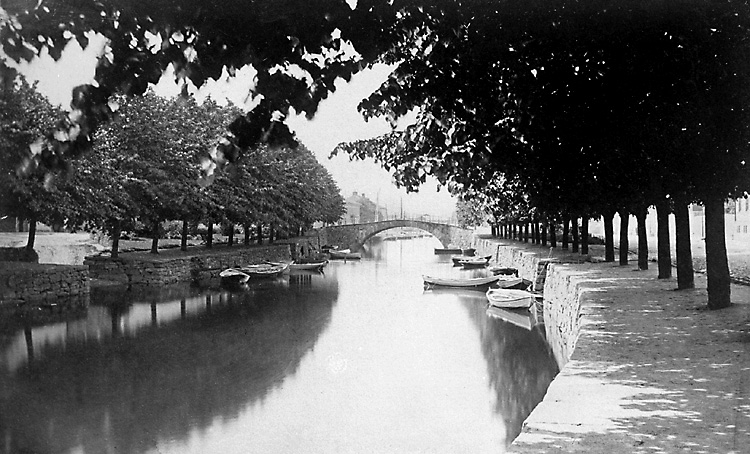 Enligt tidigare notering: "Bäveån med småbåtar öster om stenbron."