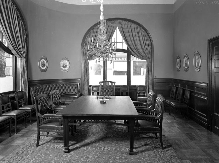 Titel: Uppgift enligt fotografen: "Uddevalla. Interiör. Sparbanken. Juli 1935."