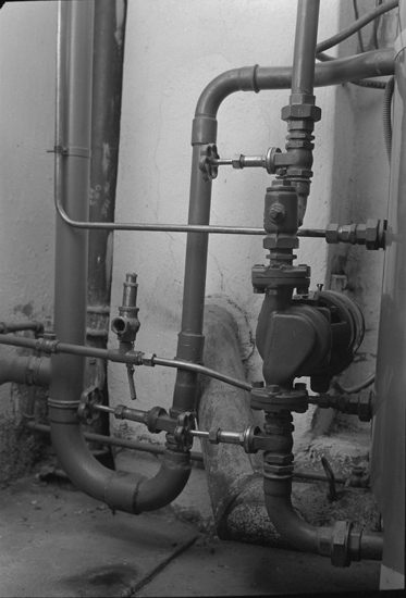 Text till bilden: "Pannrum i Sparbanken. Best. gen. Kons. Ing. Magnus Eriksson, Engelbrektsgatan 55 Göteborg. 1949.05.06"