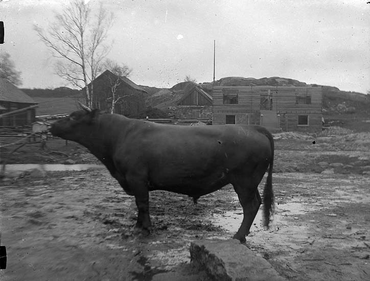 "Tjur och husbygge. Husbygge på Karlslund 1922".
